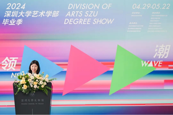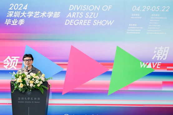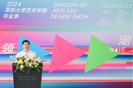 NEW WAVE: 2024 Degree Show of the Division of Arts at Shenzhen University officially kicked off at 10:00 AM on April 29 at the Shenzhen University Art Museum. Attending the opening ceremony were Vice President Li Yonghua of Shenzhen University; Director Wang Zhizhong of the Organization and United Front Department of the Party Committee of the University; Director Yuan Lei of the Academic Affairs Office; Deputy Director Yang Zhenyu of the Publicity Department of the Party Committee; Party Secretary Zhang Jianbin of the Division of Arts, vice-deans of the division’s schools, faculty representatives; faculty guests from sister universities including Southern University of Science and Technology, Shenzhen Polytechnic University, and Shenzhen City Polytechnic; guests from industry associations and enterprises; guests from division’s alumni association; and representatives of graduates and their parents.