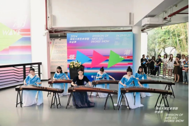 The opening program featured a Guzheng trio performance "Song of Tianshan" and choral performances of “China Must Be Strong” and "My Motherland and Me" by students from the School of Music and Dance, Division of Arts. These performances not only expressed the division's heartfelt wishes for the graduates but also symbolized the graduates' future journey, brave and unstoppable like waves. Amidst the melodious music, the 2024 Degree Show officially set sail.