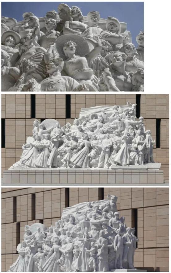 The creation of "Chasing Dreams" took three years, involving the collection of nearly 10,000 pieces of data, dozens of design proposals, and more than 30 rounds of selection. The work features 73 character images, integrated into the central theme, forming a majestic formation of unity and progress. It reflects the indomitable spirit of the people of all ethnic groups in China, constantly striving and advancing toward new heights.