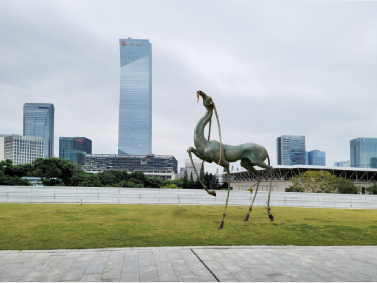 在“自然与生命”分主题中,蔡志松的雕塑-装置《浮云》将云这一抓不住的东西实体化,表达对这一自然对象的赞美,同时也表达了他的人生观;吴达新的雕塑《巨浪》象征着大海的浩瀚和强悍,表达了他内心澎湃的激情;苏新平的雕塑《影子与马》隐喻了世界上所有生命相互依存的共生关系,诠释了宇宙间无处不在的对立统一法则;申红飙的雕塑《彦茨噶哈》吸收了汉魏时期雕刻夸张体量、强调张力的造型风格,讴歌了一马当先、一往无前的蒙古马王精神;刘明慧&李康文合作的雕塑《孵化》以卡通化的手法将黑脸琵鹭塑造成活泼可爱的潮玩形象,并且赋予其诙谐幽默的人格特征,寄托了年轻人的希望和梦想;禹飞的雕塑《速度》展现了猎豹的力量、速度和优美。