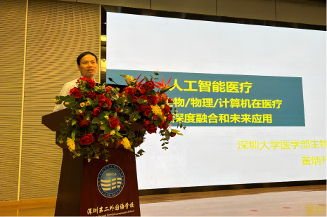 此次活动由深圳市第二外国语学校物理教师沈新科老师主持,特邀主讲人黄炳升副教授为学生们带来了题为《人工智能医疗-生物、物理、计算机在医疗中的深度融合和未来应用》的讲座,其内容主要围绕“人工智能医疗简介”“深圳大学人工智能医疗”“同学们的机会”三大部分进行,黄炳升副教授首先从“人工智能医疗简介”开始向同学们介绍了人工智能医疗的概念,然后在“深圳大学人工智能医疗”内容中从多个维度与层次向同学们剖析人工智能医疗涉及的学科、人工智能医疗的就业前景、人工智能医疗的未来等知识,并从学校介绍、师资力量、地域优势、办学特色、学科方向等方面强调了深圳大学作为全球进步最快的高校之一,大力扶持生物医学工程等宝藏专业发展的详细情况。讲座最后,拥有丰富招生经验的黄炳升副教授也为同学们带去了“深圳的人工智能产业未来可期”“填报志愿决不是掷骰子”“考虑志愿就是思考未来之路”“选择深圳大学的四个理由”等高考专业选择与志愿填报相关的实用性忠告。至此,本次的“深圳大学名师进中学”讲座活动圆满结束。