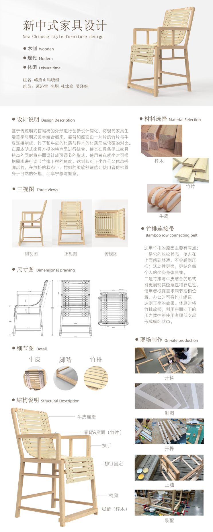在漫长的文明史上,中国的家具设计有着基于哲学思考并经过历史检验的审美、价值观和艺术追求。尤其是文人风格的明式家具,似乎具有超越个人、民族、地方和时代审美偏好的美学质量,可久可大,历久弥新,似乎具备成为中国式现代家具源头活水的生命力。我们在课程中尝试对其进行探索,并尝试以其为切入点理解其背后的哲学思想,最终,我们尝试把自己所理解的中国式审美、价值观和艺术追求融入现代生活,尝试为中国式现代生活设计中国式现代家具。