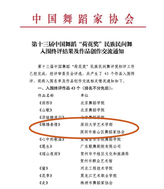 近日,由我部音乐舞蹈学院师生创作的舞蹈作品《锦绣春情》成功入围由中国文联、中国舞协主办的第十三届中国舞蹈“荷花奖”民族民间舞终评。
