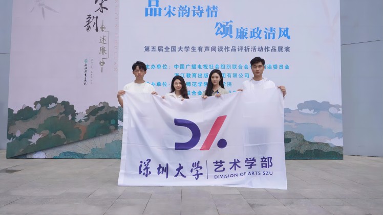 由中广联有声阅读委员会主办的第五届全国大学生有声阅读作品评析活动作品展演于5月27日在浙江省湖州市圆满结束。在播音主持系主任陈昕瑜副教授倾力指导、研究生陈安琪全程协助下,饶兆伟、何浩文、尹昕雨的有声诵读作品荣获全国二等奖(优良作品奖),王雨欣、夏诚梓、李金谕的作品荣获入围作品奖,陈昕瑜副教授荣获优秀指导老师奖,深圳大学荣获优秀组织单位奖。
