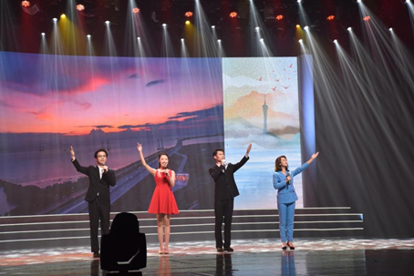 深大参展作品《面朝世界,读懂深圳的时间简史》,是深圳媒体为深圳特区成立40周年创作的诗社论。作品紧扣时代主题,歌颂了改革开放以来深圳经济特区取得的里程碑式的非凡成就。诗朗诵版由播音主持系学生彭玉萍、向龙成、钟振华、王艺静生动演绎。4位深大学子以声音为桥梁,连接粤港澳,献礼新时代,青春洋溢,鼓舞人心。展演结束后,活动组委会和主办方对深大的演出表示了热烈祝贺和高度好评。