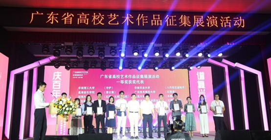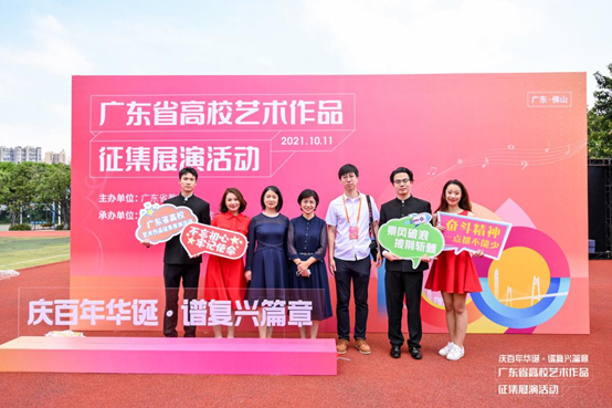 广东省高校艺术作品征集展演活动以“庆百年华诞、谱复兴篇章”为主题,是推进全省高校美育改革发展,献礼建党一百周年的一项重要举措。本次活动自今年三月启动,共收到来自全省各高校报送的1446件作品。经过初赛、复赛的激烈角逐,最终共11支参赛队伍获得现场展演资格。