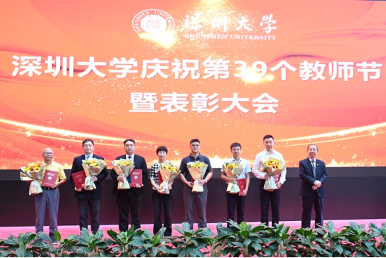 9月8日上午,深圳大学在校友广场召开“深圳大学庆祝第39个教师节暨表彰大会”,艺术学部两位老师在大会上荣获表彰:黄永健老师获从教30年教育工作者;车达老师获教学工作突出贡献奖。
