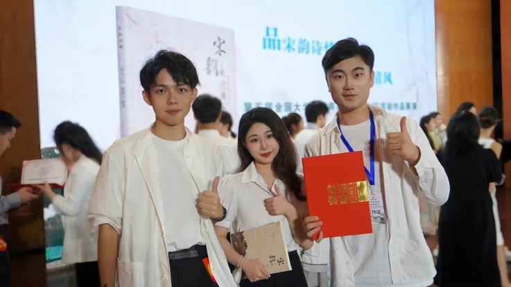 据了解,这次评析活动共收到全国120多所高校近1000件作品参赛。参赛学生基于《宋韵述廉》内容独立创作,在深挖廉洁精神、体会诗歌情感的同时兼顾语言表达技巧、表现手法。深圳大学艺术学部影视与戏剧学院研究生饶兆伟、本科生何浩文、尹昕雨(一骑红尘妃子队)创作的《以苏杭序章答东坡居士》和本科生王雨欣、夏诚梓、李金谕(踏雪寻梅队)创作的《酌贪泉因吊吴隐之三首》均顺利入围百强优秀作品参与展播。