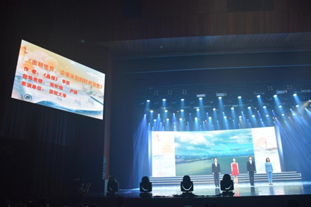 深大参展作品《面朝世界,读懂深圳的时间简史》,是深圳媒体为深圳特区成立40周年创作的诗社论。作品紧扣时代主题,歌颂了改革开放以来深圳经济特区取得的里程碑式的非凡成就。诗朗诵版由播音主持系学生彭玉萍、向龙成、钟振华、王艺静生动演绎。4位深大学子以声音为桥梁,连接粤港澳,献礼新时代,青春洋溢,鼓舞人心。展演结束后,活动组委会和主办方对深大的演出表示了热烈祝贺和高度好评。