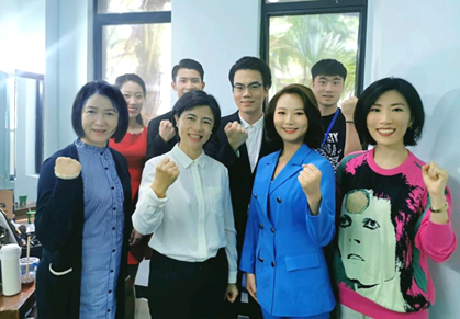 图3-王婷教授在化妆间为参演团队加油鼓劲