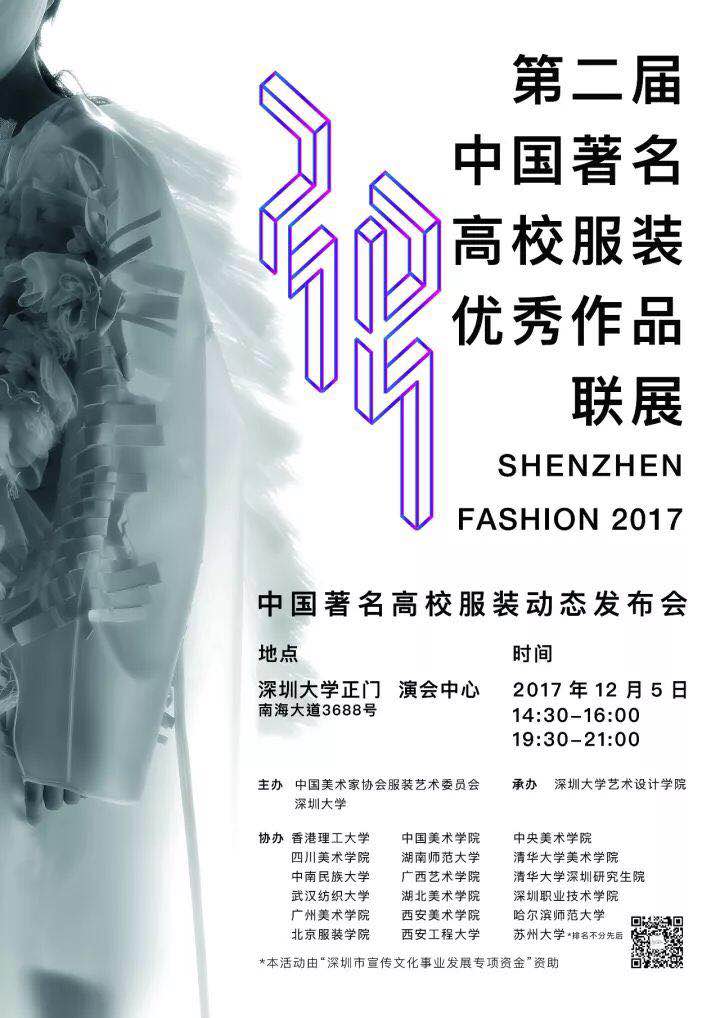 2017年12月5日,第二届中国著名高校服装优秀作品联展将于深圳大学演会中心隆重开演。本次活动由中国美术家协会服装艺术委员会、深圳大学联合主办,深圳大学艺术设计学院承办,由“深圳市宣传文化事业发展专项资金”全力资助,力求展示我国服装设计高等教育的丰硕成果,探索和建构中国服装设计高等教育的发展前景。