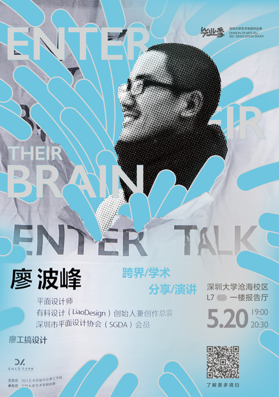 ENTER TALK,第五场跨界讲座等你来!了解更多“ENTER毕业季”活动内容,请关注“深圳大学艺术学部”微信公众号 。