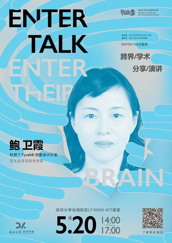 ENTER TALK,第四场跨界讲座等你来!了解更多“ENTER毕业季”活动内容,请关注“深圳大学艺术学部”微信公众号 。