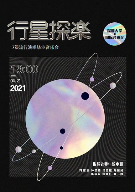 2021深圳大学艺术学部“ENTER毕业季”,展演板块活动之一——2017级金钟流行演唱毕业音乐会《行星探乐》,将于4月21日19:00在深圳大学国际会议厅启幕开演!