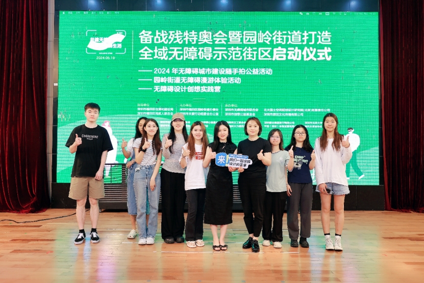2024年5月19日下午,深圳大学艺术学部美术与设计学院副院长许慧,环境设计系助理教授雷庆华带领由8名跨学院跨专业的学生组成的队伍在园岭街道百花小学参加了无障碍设计创想实践营启动仪式。