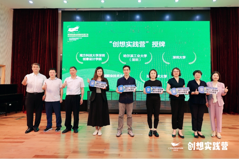 授牌仪式上,参加创想实践营的高校实践行动组由与会领导和嘉宾授予营牌,象征第四期创想实践营的正式启航,艺术学部美术与设计学院副院长许慧代表深圳大学接受营牌。