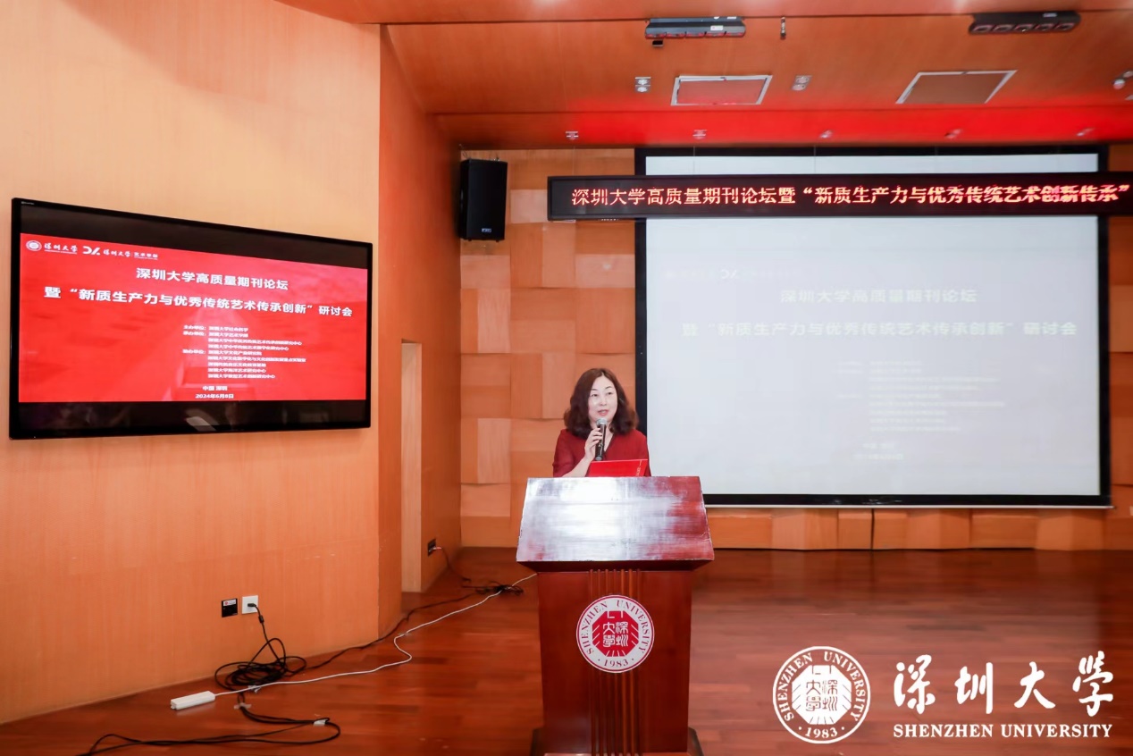 2024年6月8日上午,深圳大学高质量期刊论坛暨“新质生产力与优秀传统艺术传承创新”会议在深圳大学粤海校区音乐厅举行。该会议由深圳大学社会科学部主办,围绕如何推动中华优秀传统文化创造性转化和创新性发展,推进新质生产力、突破传统生产力,特设两场会议研讨,并邀请非遗代表性专家进行传统工艺展示与互动。校内外专家代表共44人参加了本次会议。