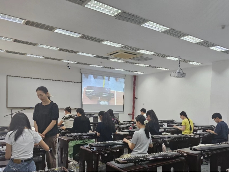 本学期课程内容融汇了琴史、琴器、琴派、琴谱、琴乐和琴道六个方面,通过介绍古琴文化知识、基础指法训练以及系列课程教授,如《酒狂》《仙翁操》《秋风词》《沧海》等曲目。通过引导学生了解、认识古琴,领悟古琴艺术之美,为我校师生提供优越的古琴学习与体验机会,打造轻松愉悦的古琴文化体验园地。
