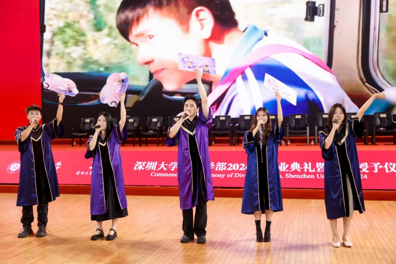 典礼最后,5位毕业生代表高歌领唱《凤凰花开的路口》,歌声悠扬,响彻元平,毕业告别氛围感满满,至此艺术学部2024届毕业典礼暨学位授予仪式圆满结束。祝愿各位毕业生鲲鹏万里,前程似锦!