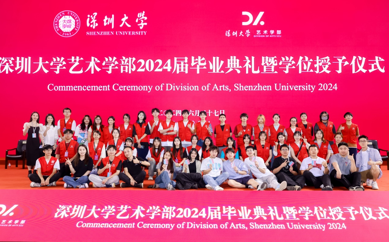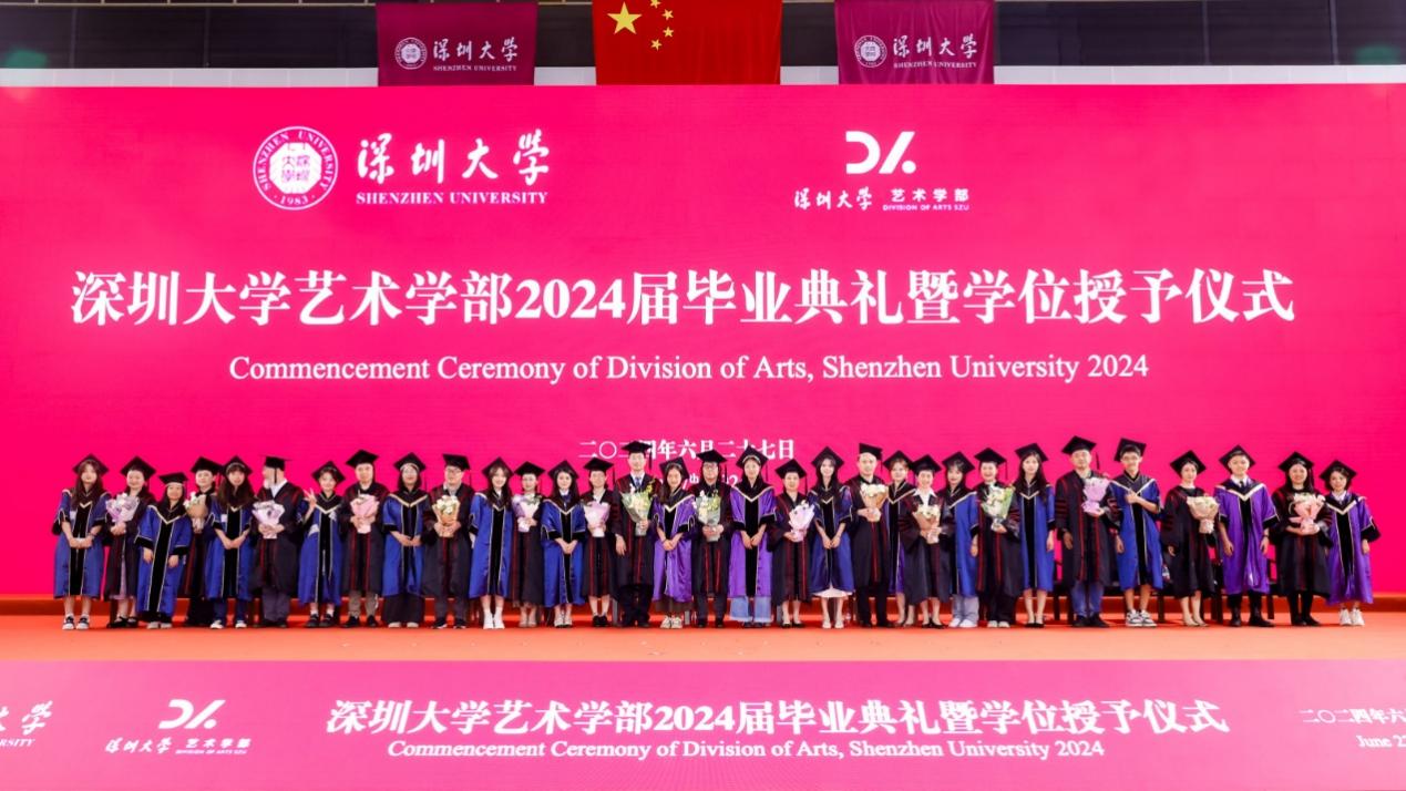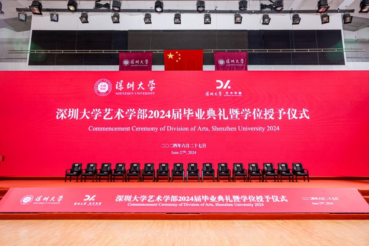 6月27日下午,深圳大学艺术学部2024届毕业典礼暨学位授予仪式在元平体育馆隆重举行。出席典礼的学部学院领导和主礼教授有学部党委书记张剑滨博士、学部副主任兼美术与设计学院院长陈向兵教授、学部副主任兼音乐舞蹈学院院长刘琨教授、学部党委副书记汪渝、学部副主任贺沁洋副教授、学部副主任赵辉副教授、美术与设计学院基础部黄永健教授、美术与设计学院副院长罗莹教授、戏剧影视学院播音与主持艺术系王婷教授、美术与设计学院服装设计系戴耕教授、美术与设计学院服装设计系苏芷庭教授、美术与设计学院视觉传达系周月麟教授、戏剧影视学院副院长吴熙副教授、美术与设计学院副院长许慧副教授、戏剧影视学院陈昕瑜副教授、音乐舞蹈学院院长助理杨婷副教授、美术与设计学院副院长王昕博士。出席典礼的还有艺术学部各系主任、各毕业班班主任、辅导员老师、教辅老师及学生亲友。