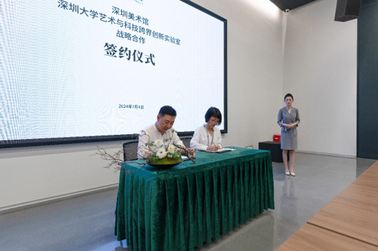 座谈结束后,实验室负责人车达与深圳美术馆副馆长王新妮正式签署了战略合作协议。根据协议,合作内容主要包含四个方面:一是针对大学生美育通识教育及美术馆数字化与藏品保护两大方向开展探索性创研合作,包括但不限于应用于艺术与教育领域的技术、内容、产品;二是围绕设计、文化、艺术和科技跨界融合等热门主题联合举办艺术展览、学术讲座、学术会议;三是联合发起公共艺术教育计划,结合线上线下、虚拟现实、实验实践等方法,共同开发针对青少年艺术教育课程包,推广美育教育;四是围绕艺术作品的研究与保护开展实验性创研合作。