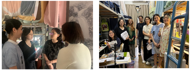 艺术学部副主任贺沁洋、美术与设计学院副院长许慧、数字媒体艺术系主任吴浚、辅导员陈紫丹、文思莉共同走访了乔森阁学生宿舍,与设计系的同学沟通交流。在走访过程中,贺沁洋副主任对同学们的校园生活情况表示关心,询问假期是否有留校安排,与同学们交流假期计划。