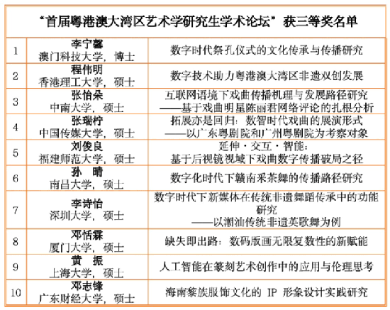 经过短暂而充实的思想碰撞和学术交流,首届粤港澳大湾区艺术学研究生学术论坛圆满落下帷幕。我们希望,这次论坛的举办不仅是一个思想碰撞的节点,更是未来探索的起点。期待大家能够持续关注大湾区艺术学研究的发展,共同推动中华优秀传统艺术的传承与创新,为艺术学科的发展作出更大的贡献。