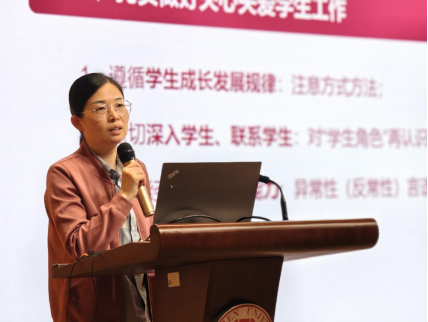 导师代表李琼老师从专业的角度,结合艺术疗愈的形式,生动形象的阐述了作为导师应如何去关注关怀学生,;齐驸老师则表示导师应关注学生心理,因材施教,构建亦师亦友关系,共促学生成长成才。
