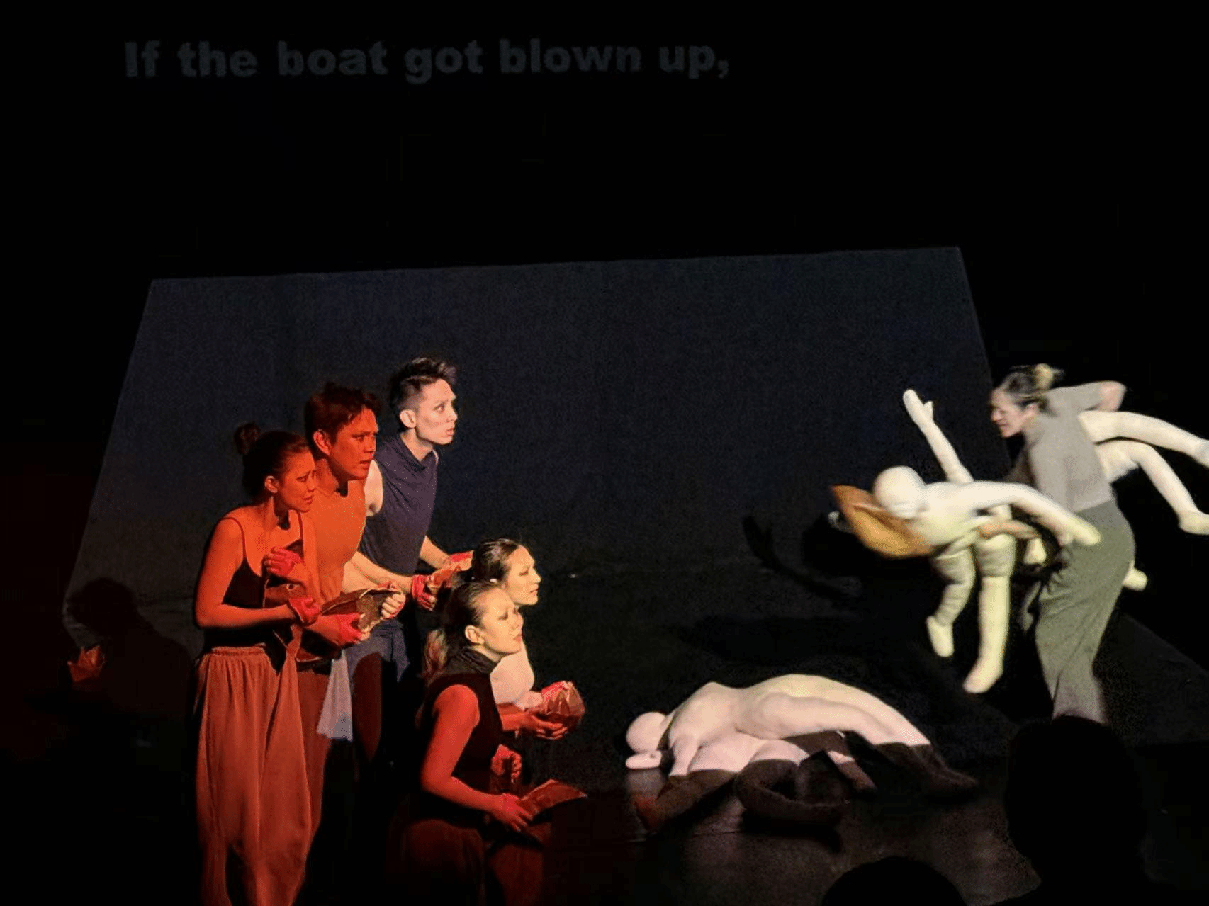 结束意大利的所有演出后,老师和同学们马不停蹄转赴爱丁堡演出另一剧目《彼岸的风景画》。该剧采用工作坊的无文本创作方式,以基里科油画《美杜莎之筏》为灵感,结合真实新闻事件构建戏剧内容肌理,探讨人性在极端环境下的临界状态。首演结束后,《彼岸的风景画》成为本届艺术节唯一入选C Arts Showcase展演的中国剧目。演出还吸引了法国阿维尼翁戏剧节制作人,邀请剧团来年参加阿维尼翁戏剧节。制作人张阳老师说,“演出效果让我们相信,我们在国际舞台上找到了自己的位置。”