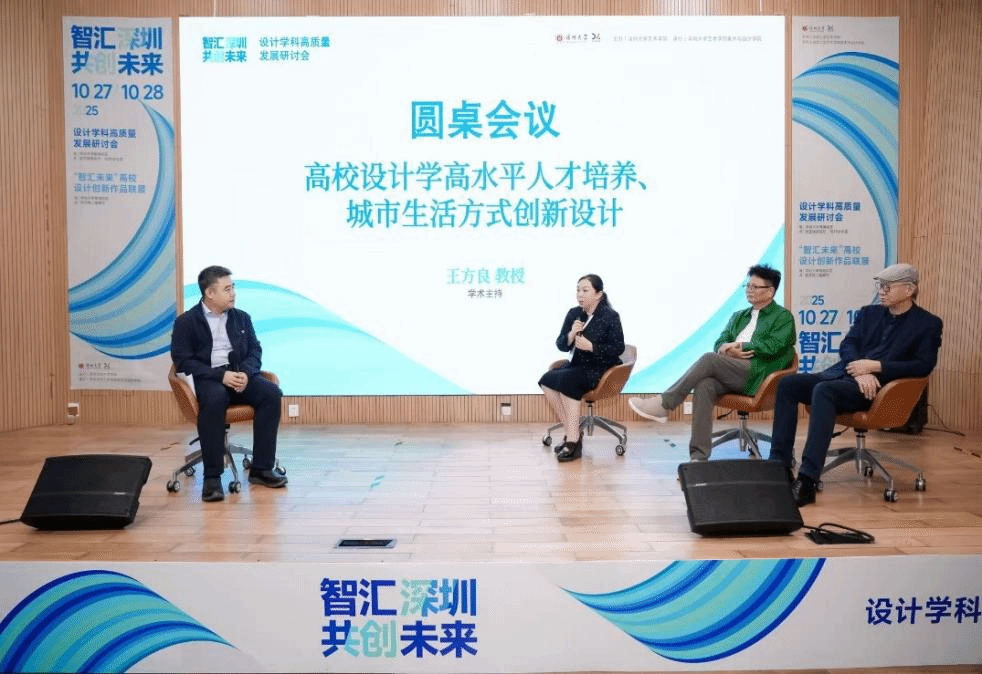 10月28日下午,与会专家就“高校设计学高水平人才培养、城市生活方式创新设计”举行圆桌会议,就设计学前沿命题展开深度研讨,为深圳乃至全国设计学科高质量发展注入智慧动能。