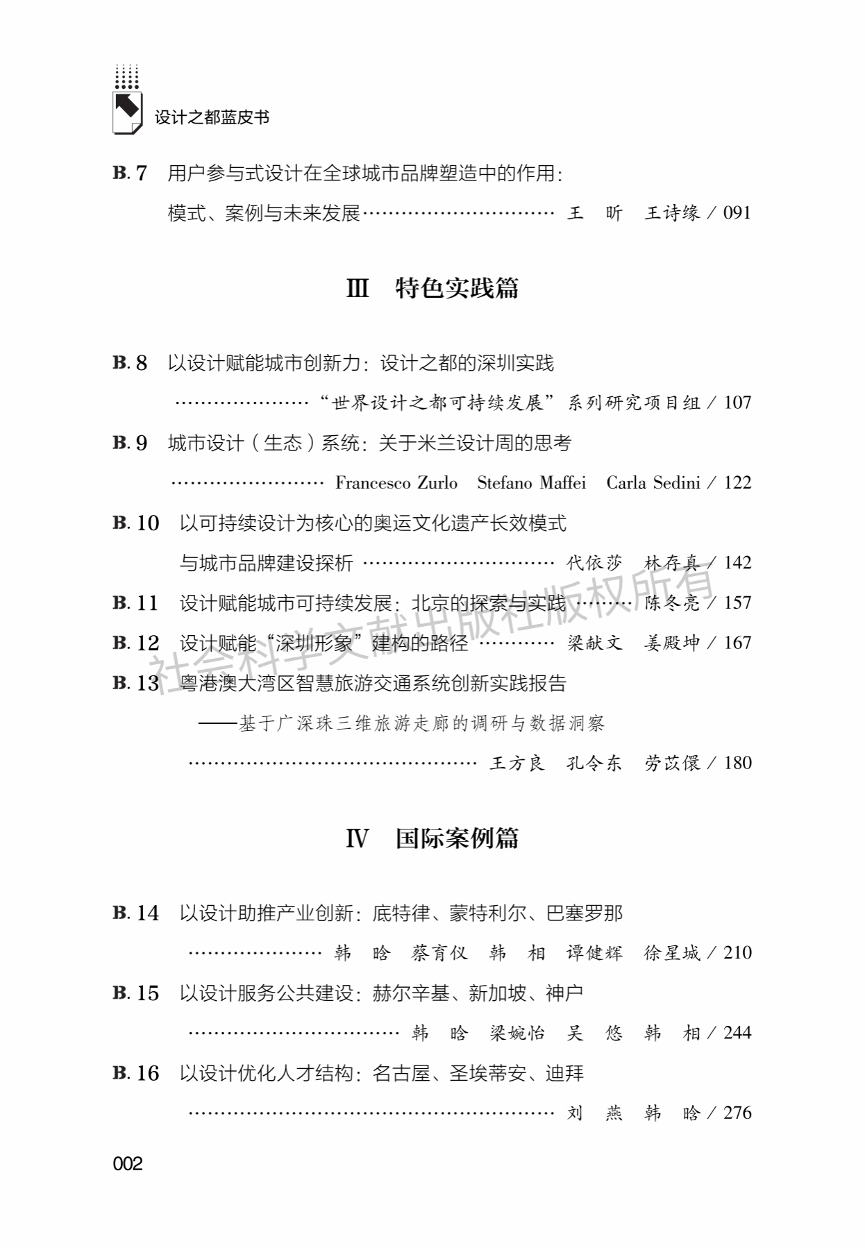 蓝皮书分为“总报告”“专题篇”“实践篇”“国际案例篇”四大部分囊括全球多个设计创新城市网络(UCCN、WDC、WDW)的代表性案例及相关实践分析与模式探析。望以此为开端形成的设计之都蓝皮书系列,能够持续与中国乃至全球伙伴一起“以设计为名、以设计为器、以设计为本”共商可持续设计之城的未来发展之路、为中国因地制宜发展新质生产力提供新思路、以“大设计”助力共绘“十五五”高质量发展新蓝图。