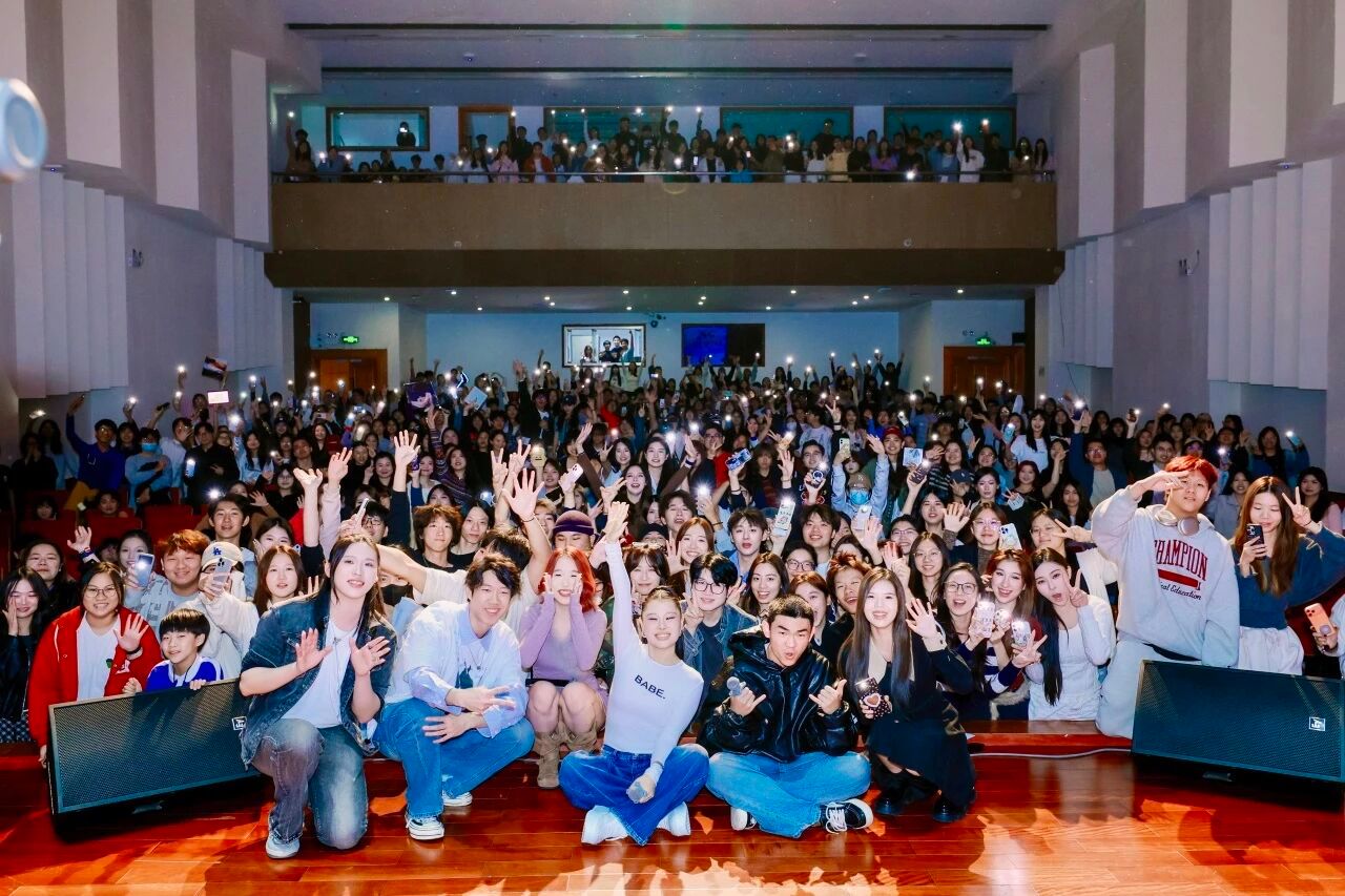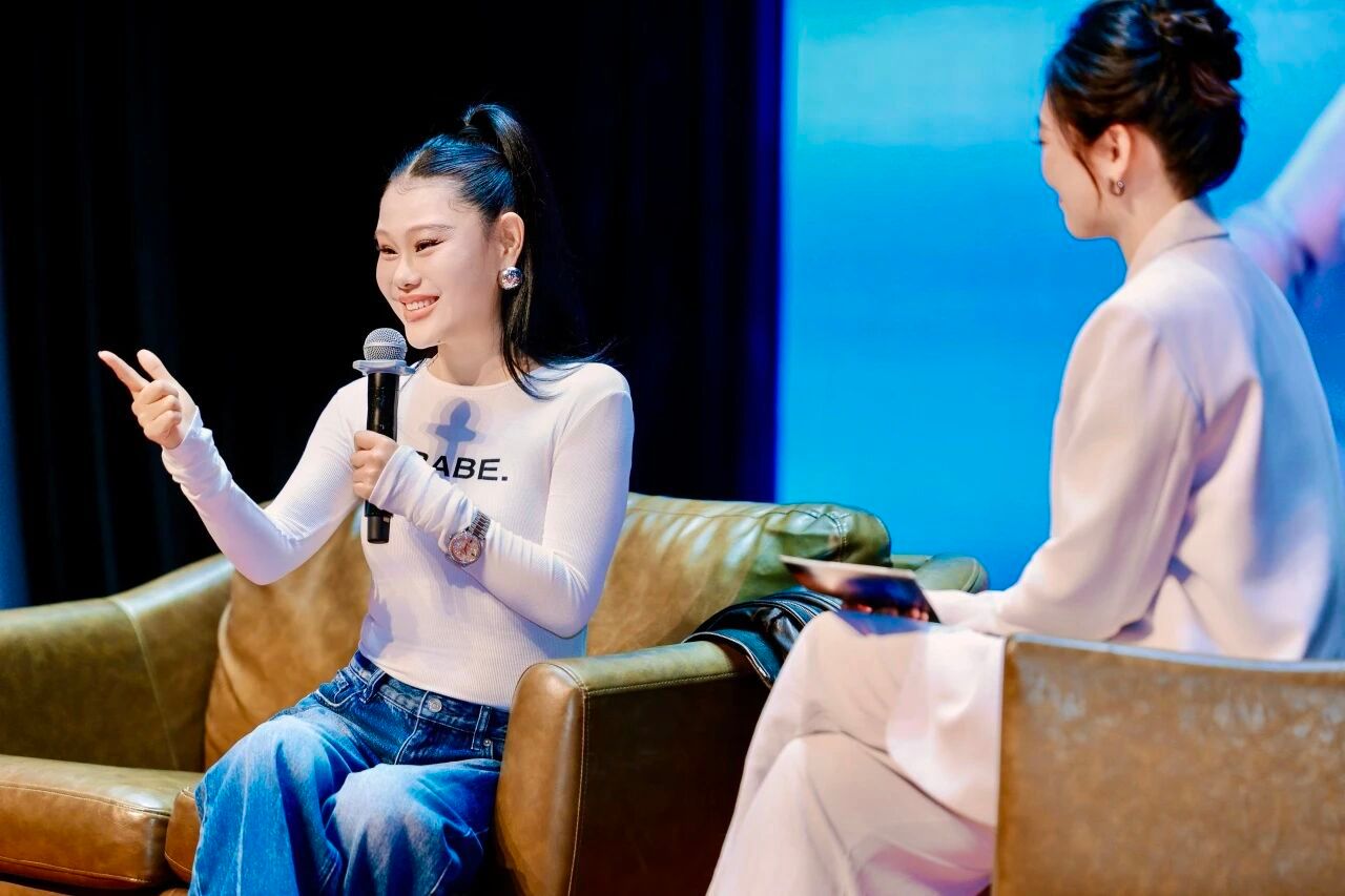 分享过程中,Tia频繁与现场观众眼神交汇、互动交流,无论是回应学子们的热情欢呼,还是细致解答关于音乐创作的困惑,都尽显率真与热情。当被问及如何在市场需求与自我表达间找到平衡时,她笑着回应:“跟着内心的声音走,真诚的音乐自然会被听见”,简单的话语里满是对音乐的执着与通透。