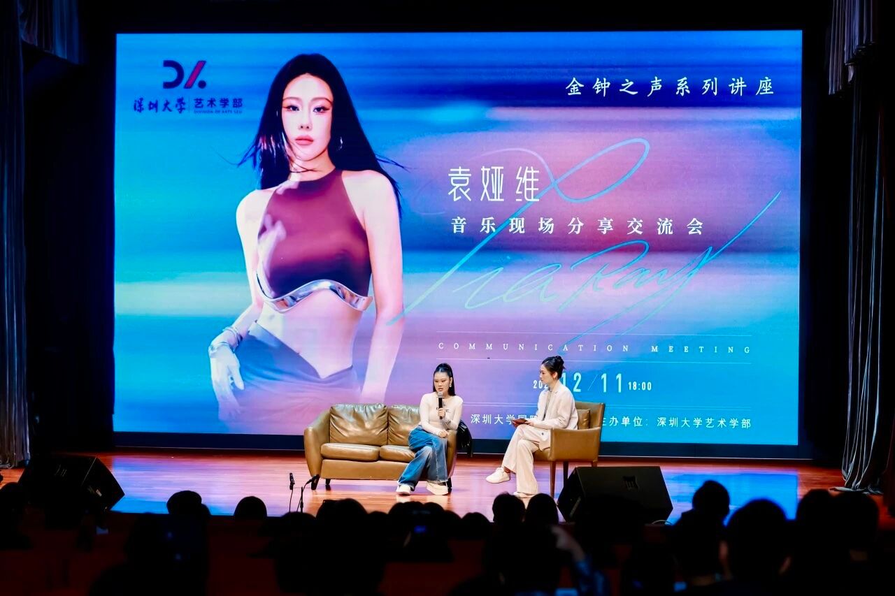 当深圳大学的晚风邂逅华语乐坛的实力唱将,一场关于音乐、热爱与成长的双向奔赴就此展开。2025年12月11日晚,深圳大学国际会议厅座无虚席、气氛热烈,“金钟之声系列讲座——华语乐坛实力唱作人袁娅维(Tia Ray)音乐分享交流会”在师生们的欢呼声中圆满落幕。从音乐心路分享到学子精彩展演,从热烈互动问答到暖心生日惊喜,每一个瞬间都定格成深大校园里最动人的音乐记忆。