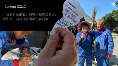 基于 “流浪玫瑰” 积累的实践经验,该团队以 “爱出者爱返,福往者福来” 为核心主题,将毕业设计与春节这一亲情团聚的关键节点相结合,打造了两场直击社会痛点、贴合社区需求的特色活动,实现了从 “都市温情传递” 到 “家庭情感凝聚”“社区文化共建” 的深度延伸。