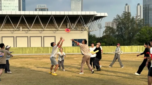 橙色的飞盘在空中划出一道道美丽的弧线,恰如舞动着的青春的音符。一次次传递,一次次欢呼,同学们都对飞盘运动的规则和技巧更加熟悉,彼此之间更有默契。