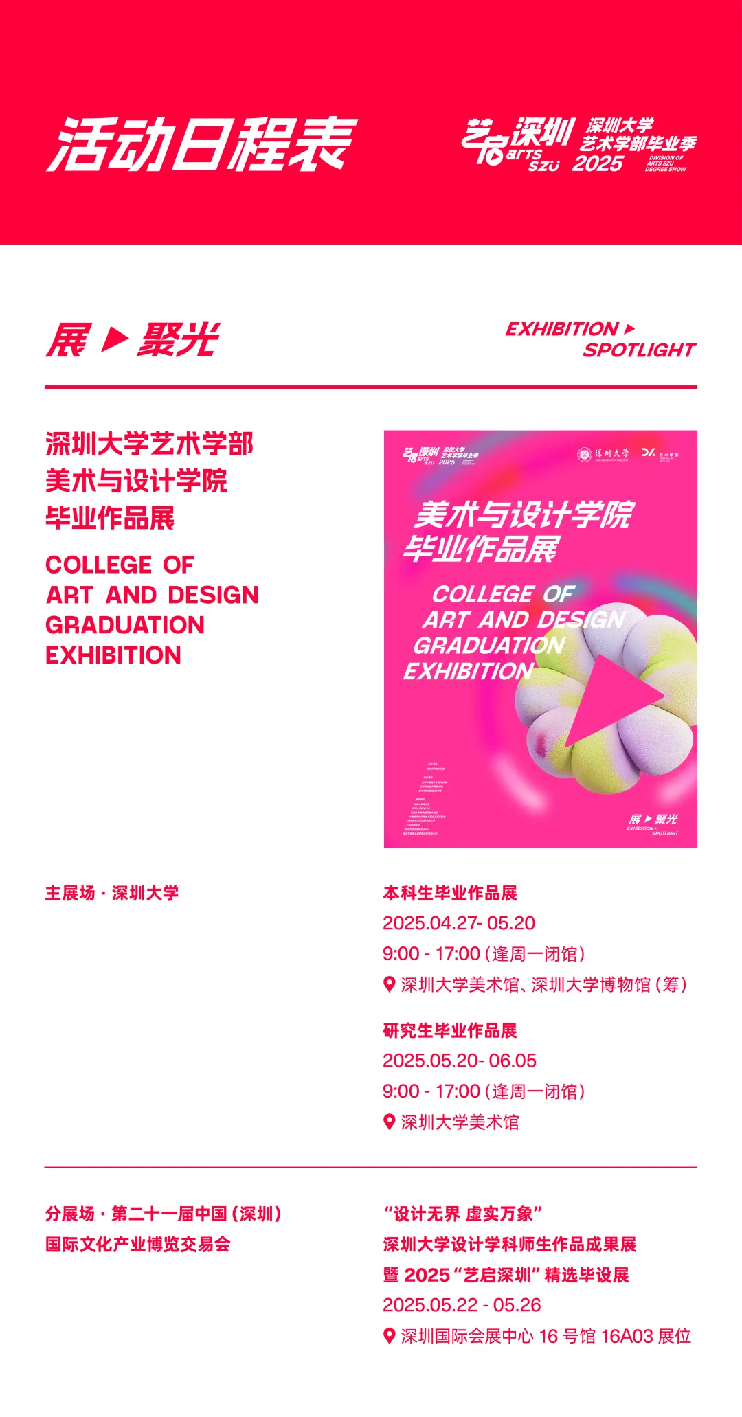 2025深圳大学艺术学部“艺启深圳”毕业季相关活动将持续至2025年8月3日,更多信息请关注深圳大学艺术学部官方公众号。