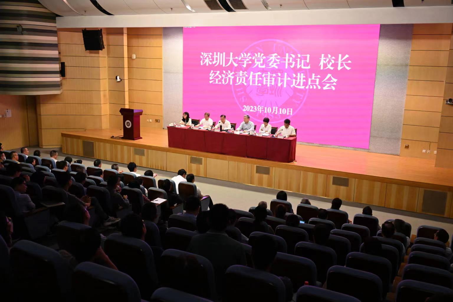 根据广东省审计厅工作安排,10月10日下午,深圳大学党委书记、校长经济责任审计进点会议在汇星楼一号报告厅召开。审计组组长、省审计厅党组成员、副厅长黄建勋讲话,并对审计工作提出了明确的要求。审计组副组长、省审计厅二级巡视员林红宣读了《关于开展深圳大学党委书记李清泉同志和党委副书记、校长毛军发同志经济责任审计的通知》,以及“八不准”审计纪律。