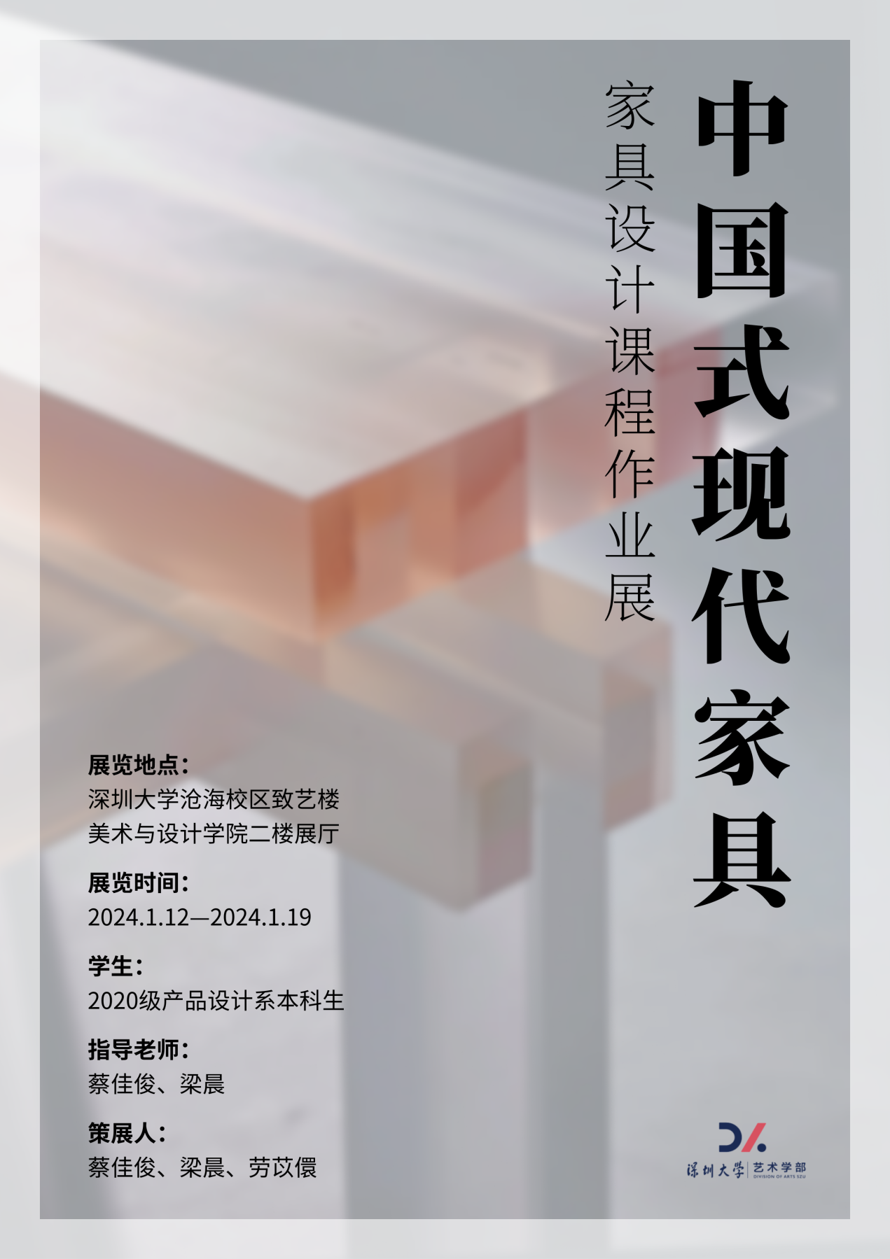 2024年1月12日上午9:00,艺术学部美术与设计学院《家具设计》课程作业成果展开幕式在致艺楼二楼展览厅举行。