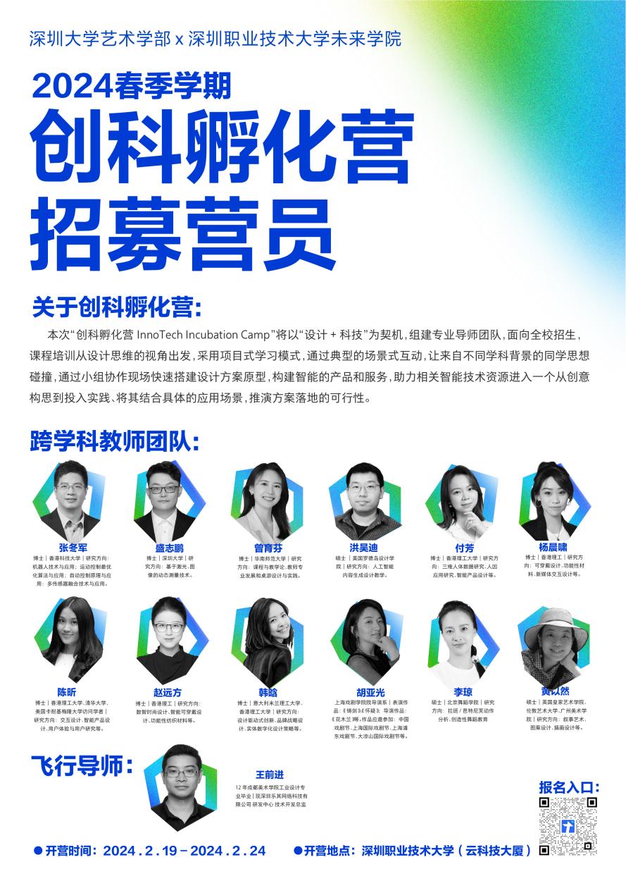 2024年2月24日上午,由深圳大学艺术学部、深圳职业技术大学未来技术学院联合发起的创科孵化营InnoTech Incubation Camp在深圳职业技术大学未来技术学院(云科技大厦)进行了2024春季学期的结营路演。