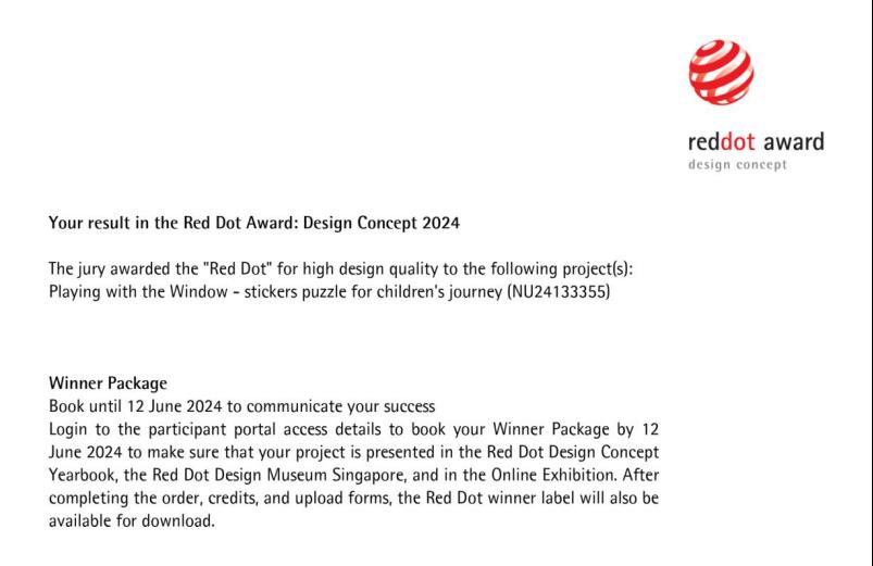近日,备受全球设计界瞩目的德国红点奖揭晓2024年度获奖名单。在 60 多个国家、地区的10000多件参赛作品中,由我校艺术学部彭燕凝副教授指导,田岑彦、杨华珍、王嘉慧三位学生完成的作品《Play with the Window-儿童旅游贴纸拼图》因其卓越的创意,斩获2024年德国红点设计概念奖。