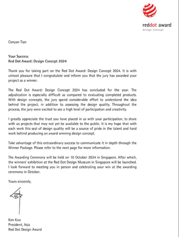 此次成功获得德国红点设计概念奖,是对我校艺术学部特色教育层面的一种高度肯定和认可,展现了艺术学部师生的风采与实力,学部将继续坚持创新教育理念,培养更多具有国际竞争力的优秀设计人才,提高学部在国际设计舞台上的影响力。