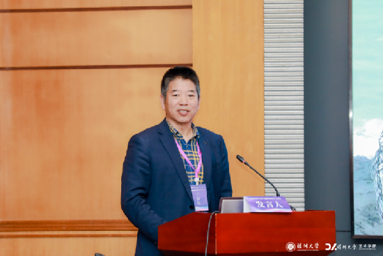 海南师范大学党委常委、副校长、美术学院院长、博士生导师张引教授作了《海南非遗文化艺术的保护与传承》的主旨演讲,分享了他在科研和人才培养中的实践与经验,并指出需将个人研究方向聚焦国家重大战略需求并推进有组织科研、建设创新型人才队伍、坚持科研成果的转化并面向实际需求提供设计服务。