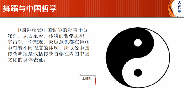 本课程围绕传统文化、艺术、舞蹈三个关键词概念及释义,着重阐述舞蹈与原始文明、舞蹈与中国哲学观、舞蹈与封建制度、中国神话中的舞蹈、舞蹈与朝野习俗、舞蹈与中国民俗文化、舞蹈与宗教信仰、舞蹈与文艺思潮、舞蹈与时代精神、舞蹈与诗文歌赋、舞蹈与戏曲、舞蹈与武术、舞蹈与音乐、舞蹈与书法、舞蹈与绘画、舞蹈与电影电视、舞蹈与当代社会生活等内容。