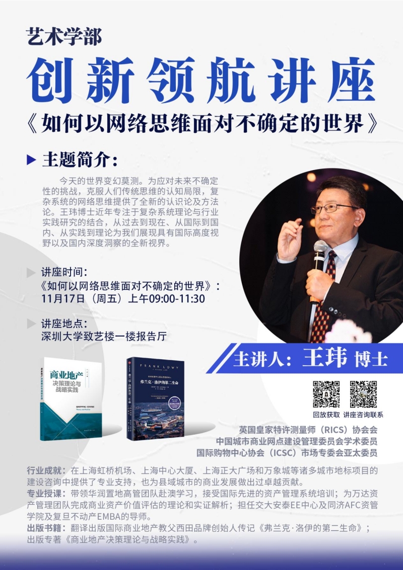 王玮博士具有30年零售、贸易、地产及咨询企业的从业经历,先后在英之杰、FILA、太古和正大集团等跨国企业担任高管,具有丰富的实践经验和深厚的理论造诣。近年来结合复杂系统理论与行业实践的研究,不断提出具有国际高度视野和国内深度洞察的观点和建言。