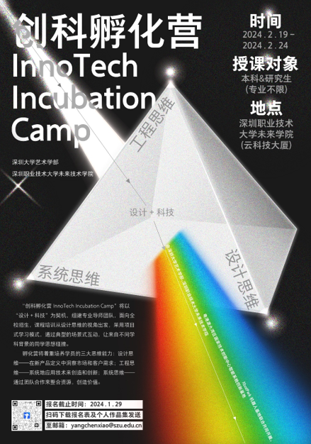 深圳作为中国的科技“硅谷”和设计之都,同时也是创业者的梦想之都,汇集了中国各类高新尖技术、设计和商业人才,同时设计在中国正在成为解决商业挑战的核心创新力量。设计驱动式创新正成为当今企业在不同发展阶段积极探索的关键路径,也是当今新工科、新文科、新艺科全面融合的创新人才培养方向的重要着力点,以撬动社会及商业生态的全面可持续发展。同时,粤港澳大湾区得天独厚的优势为年轻人提供了创新创业的沃土,因此在创科孵化营由深圳大学艺术学部、深圳职业技术大学未来技术学院和国创基金会联合共同开展。