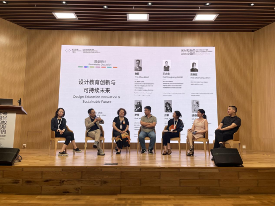 4月28日,作为该系列活动的重要环节,深圳大学艺术学部成功举办了以“设计教育创新与可持续未来”为主题的学术研讨会。会议邀请本届深圳设计周重要嘉宾、清华大学美术学院副院长赵超教授进行“面向未来的设计:国际设计教育实验室”主旨演讲,并与深圳大学艺术学部美术与设计学院副院长罗莹教授、王方良教授、陈振旺教授、张毅教授、深圳技术大学创意设计学院胡婧璇副院长进行了相关议题的圆桌对话。深圳创新创意设计发展办公室唐思、深圳大学艺术学部党委书记张剑滨、深圳大学艺术学部副主任贺沁洋、副主任赵辉、深圳大学艺术学部美术与设计学院副院长许慧等人应邀出席会议。会后,与会嘉宾在师生优秀作品展现场与参展作者就创新设计的诸多方向展开了更深入的交流。