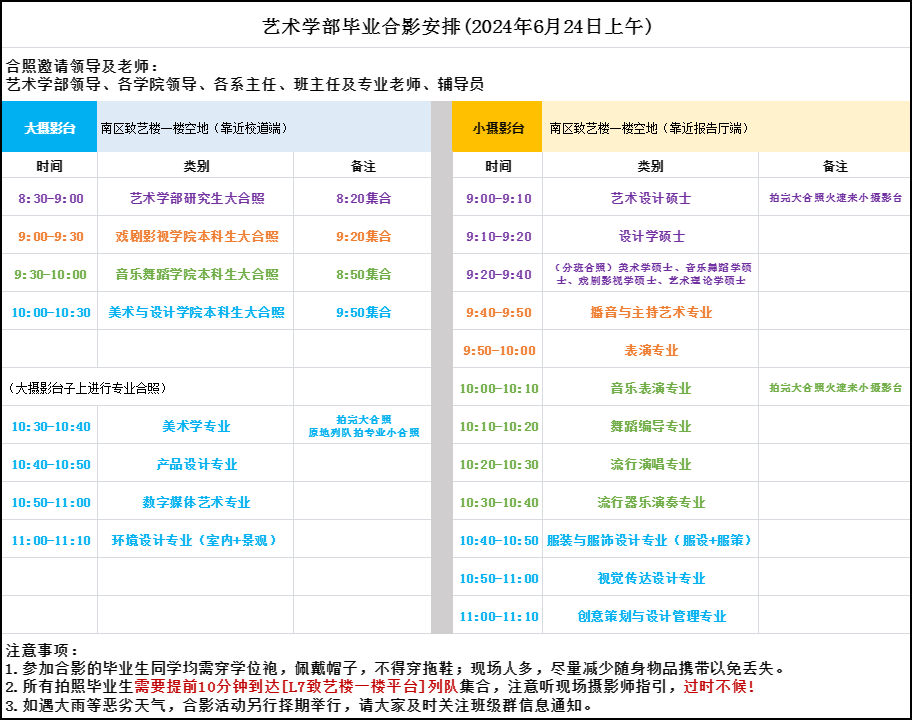 *备注:毕业合照含学院大合照+各专业小合照,详细排期和要求见PDF。